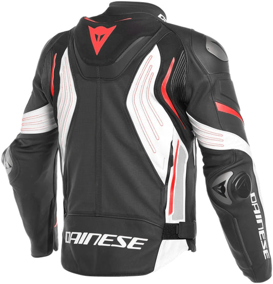 Super Speed 3 Perforated Motorcycle Leather Jacket Black / White / Red