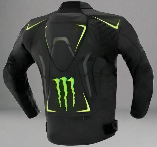 Grj Monster Energy Motorcycle Black Leather Racer Jacket