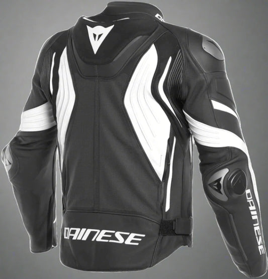 Super Speed 3 Perforated Motorcycle Leather Jacket Black / White